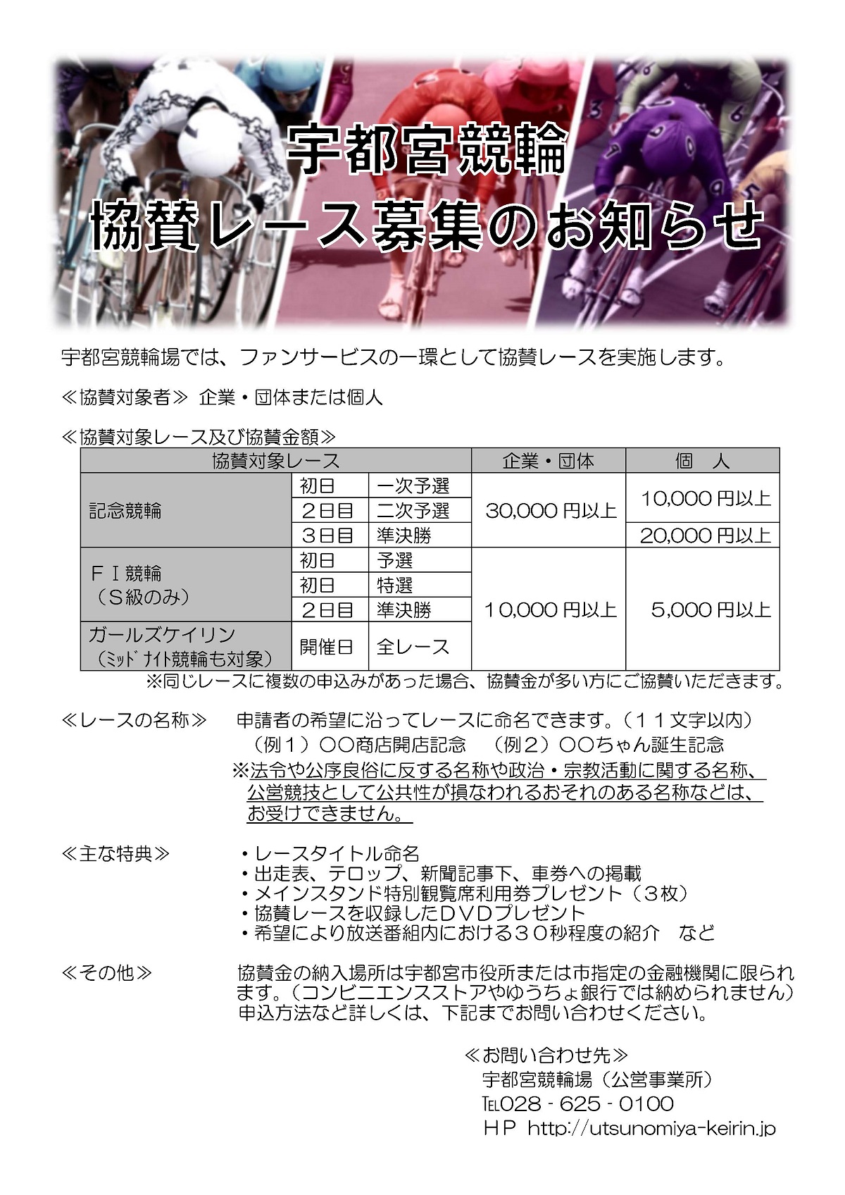 宇都宮競輪協賛レース募集のお知らせ