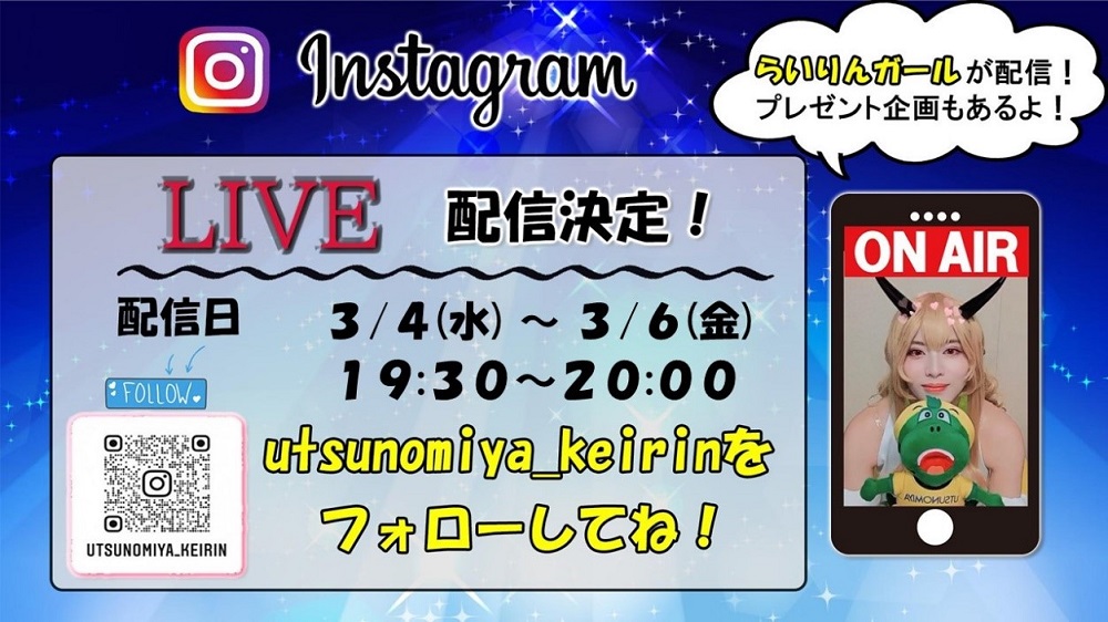 らいりんガールが宇都宮競輪場の公式インスタグラムでLIVE配信を行います。
